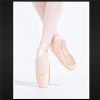 The Capezio #115 Glisse Pro Pointe Shoe is a classic ballet pointe shoe tailored for dancers developing strength en pointe and seeking a comfortable yet supportive profile. This shoe features a broad, feathered and hand-molded toe box with a wide platform, providing a stable base for balance and control during rises and transitions. The medium vamp with a U-shaped throat and lower sides and heel helps create an elegant line while accommodating a variety of foot shapes. A hand-flattened crown and quiet toe pleating enhance comfort and aesthetics, while a suede lining and shortened buffed sole give durability and tactile floor feel. Ribbons are typically sold separately.